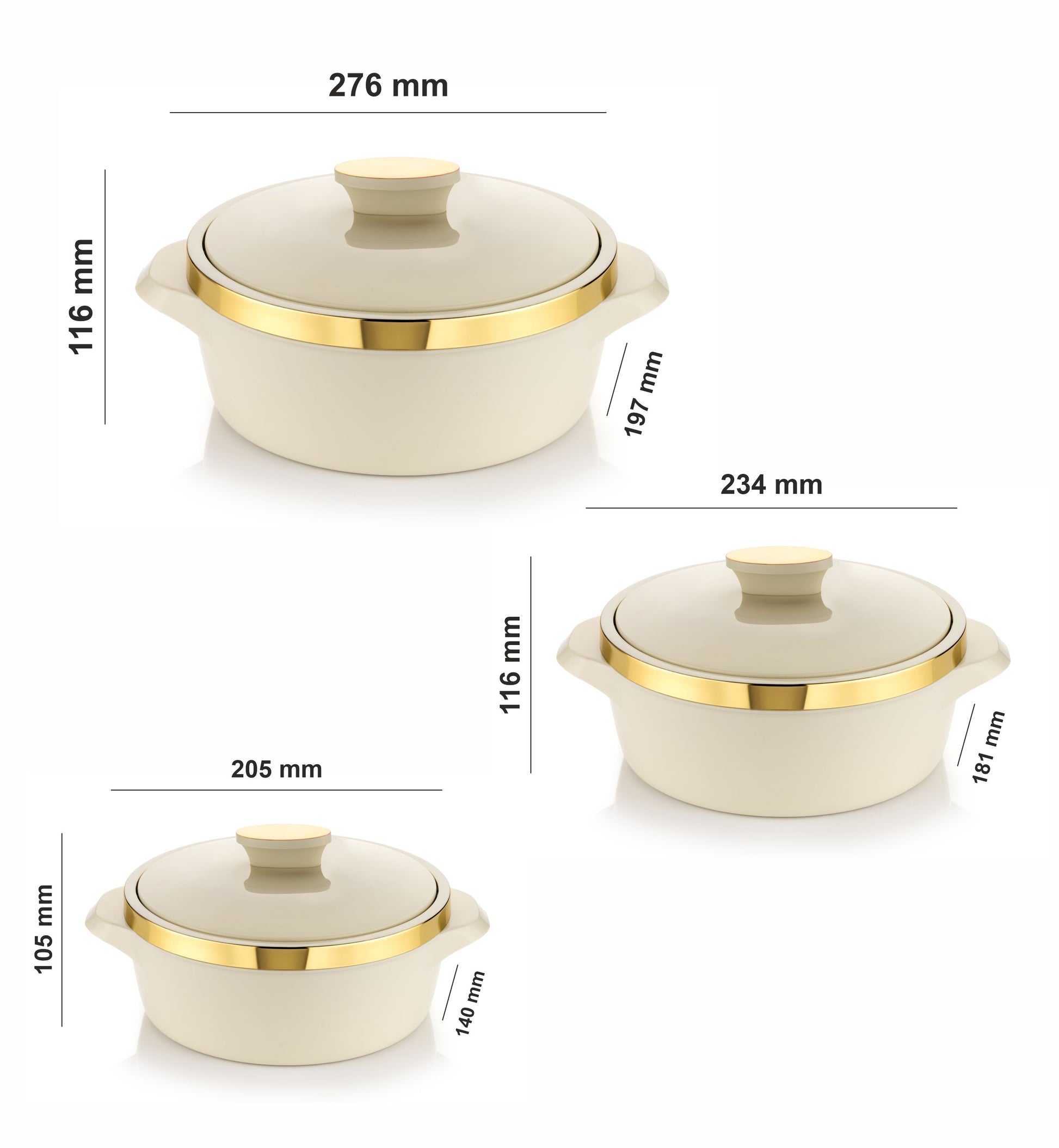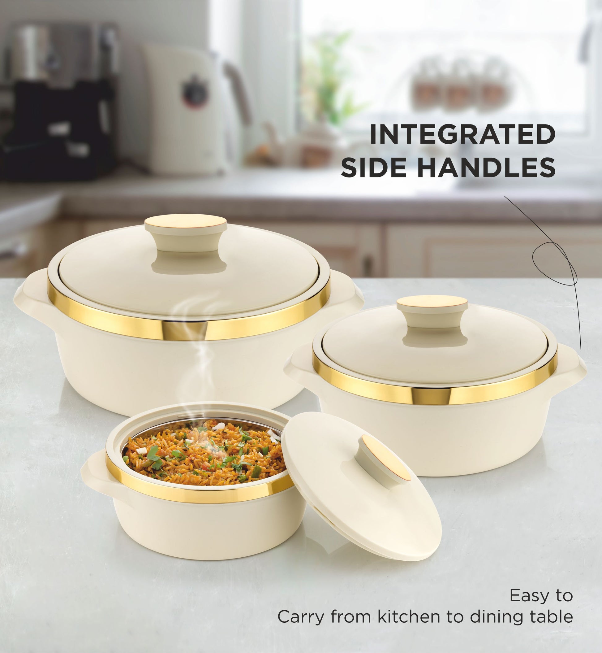 PremiumI ivory Insulated Inner Steel Casserole Set of 3, ivory (550ml, 1050ml, 1750ml) | Hot_BOX for Kitchen | Hot Pot | | Locks in The Cold & Heat for Long | Serving Bowl with Lid |