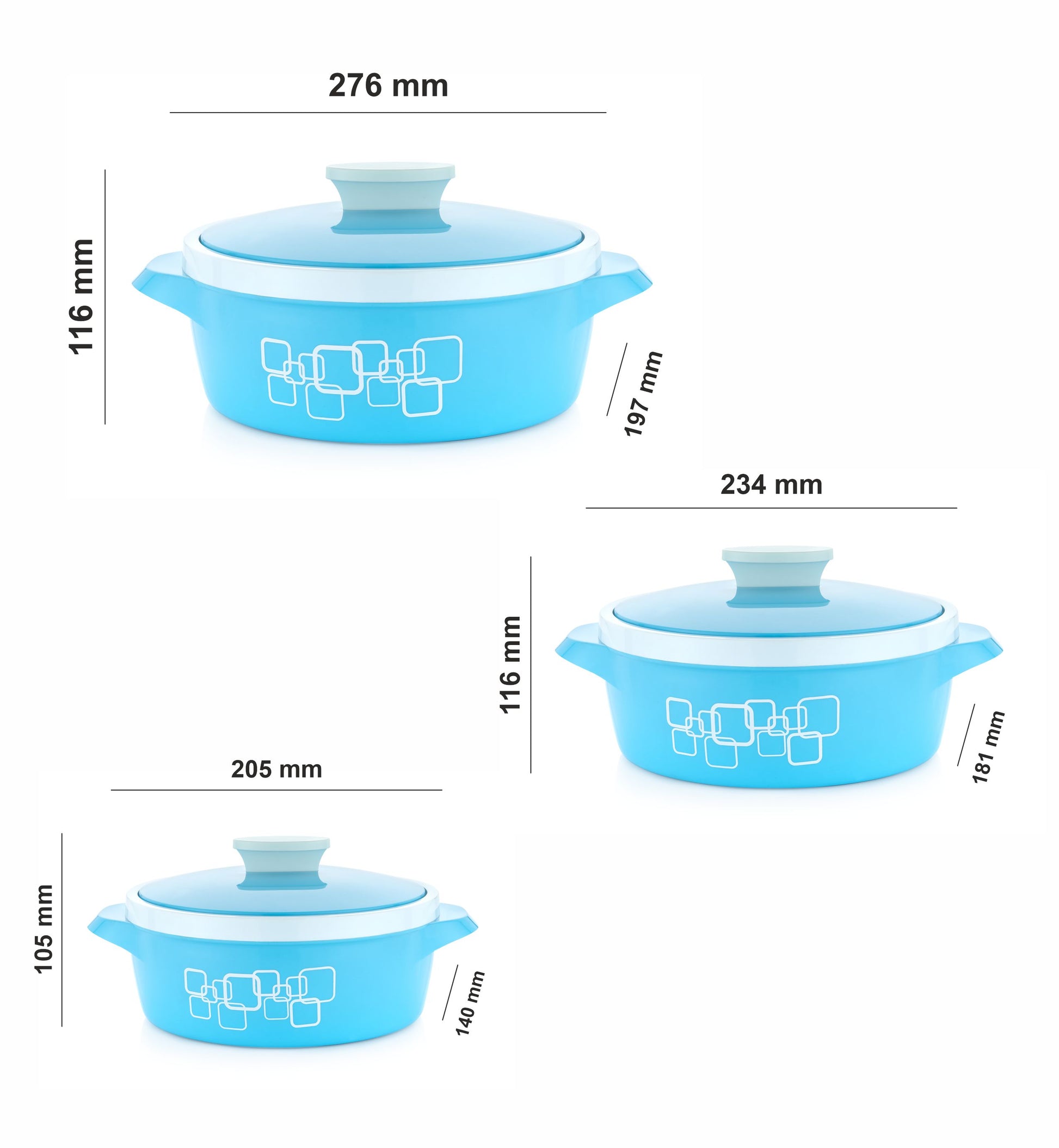 Premium sky blue Insulated Inner Steel Casserole Set of 3,sky blue (550ml, 1050ml, 1750ml) | Hot_BOX for Kitchen | Hot Pot | | Locks in The Cold & Heat for Long | Serving Bowl with Lid |